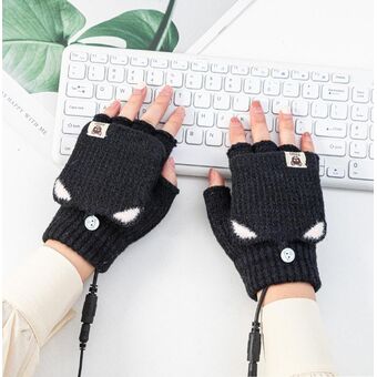 Winter Office USB Heating Warm Half Finger with Cover Gloves Heated Pad, Size: Free Size(Black)