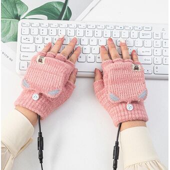 Winter Office USB Heating Warm Half Finger with Cover Gloves Heated Pad, Size: Free Size(Pink)