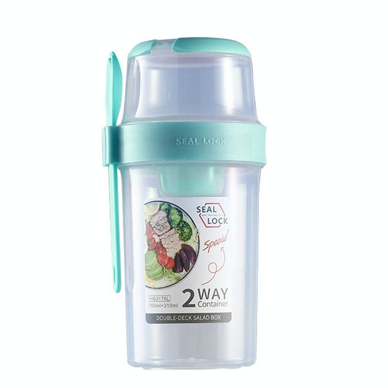 Salad Meal Shaker Cup Portable Fruit and Vegetable Container with Fork Dressing Box, Size: Large Blue