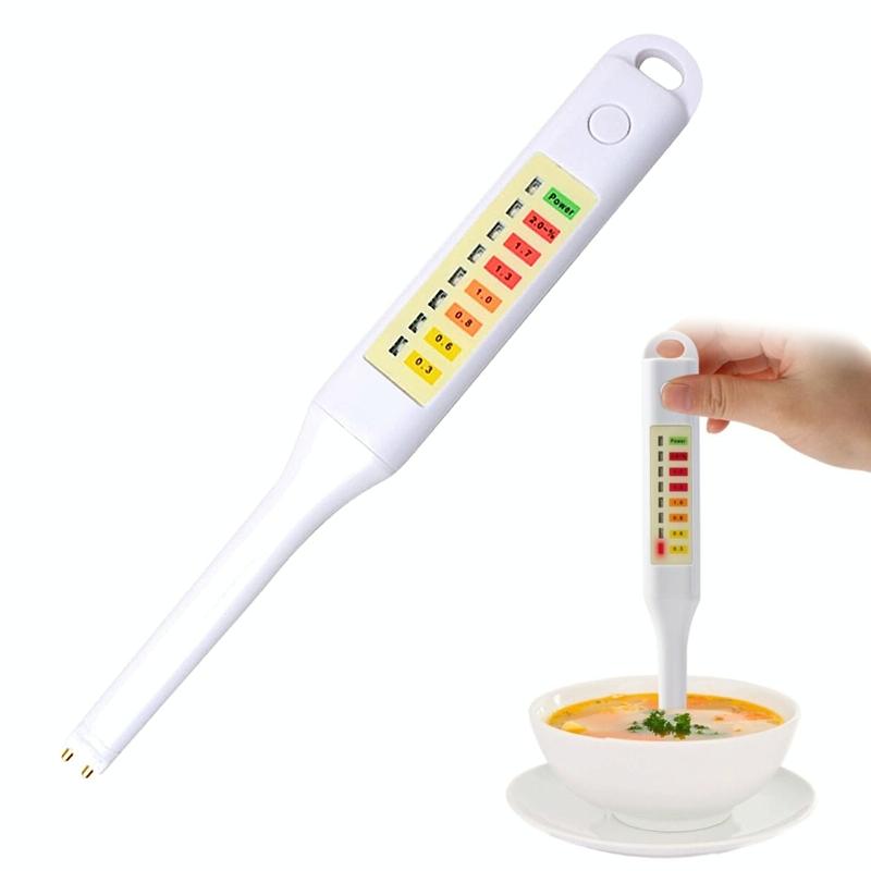 2. The salt analyzer uses conductivity test to measure the salt concentration in liquid food. Thus, the salt content can be derived to control the daily intake of salt and maintain health. The equipment features in touch pad control, seven red LED indicators, green LED power indicator, easy operation and simple use.