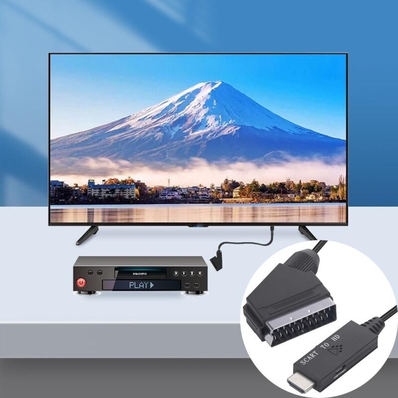 Scart To HDMI-Compatible Converter Video Audio Adapter Cable (Black)