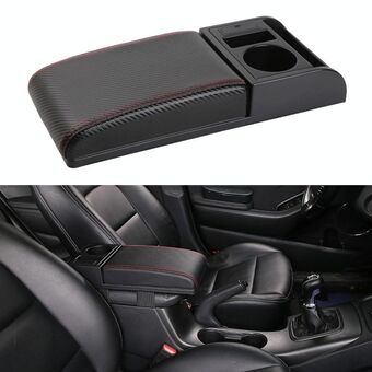 Car Multi-functional Dual USB Armrest Box Booster Pad, Carbon Fiber Leather Straight Type (Black Red)