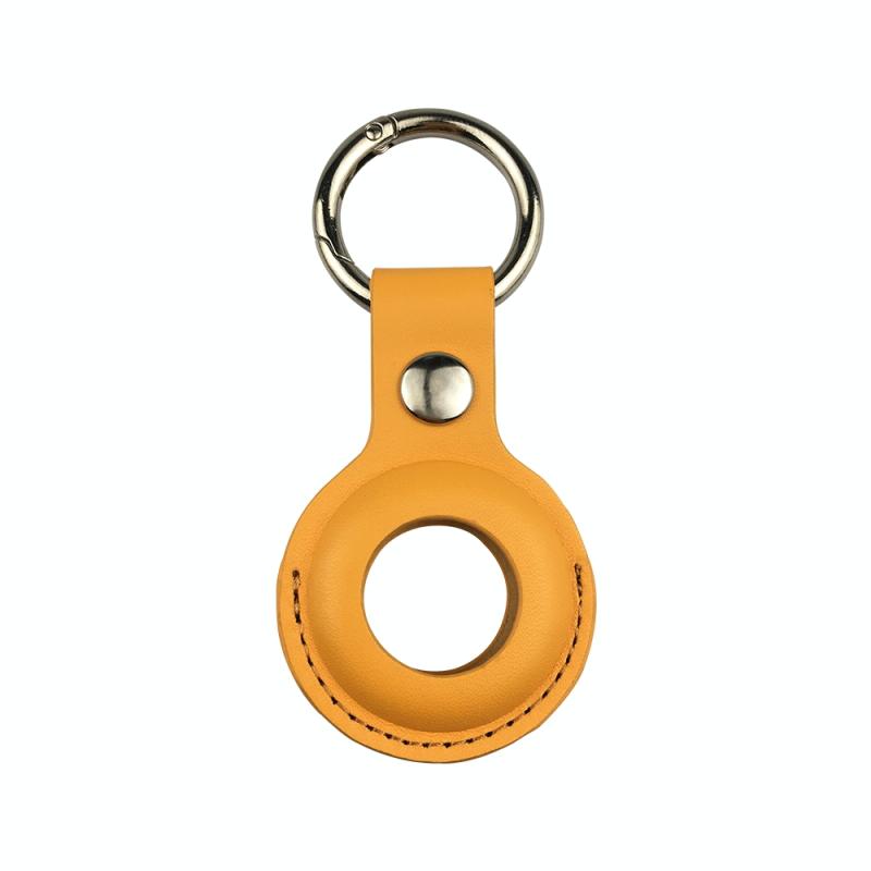Shockproof Anti-scratch Leather Protective Case Cover Key Chain with Hang Loop For AirTag(Yellow)