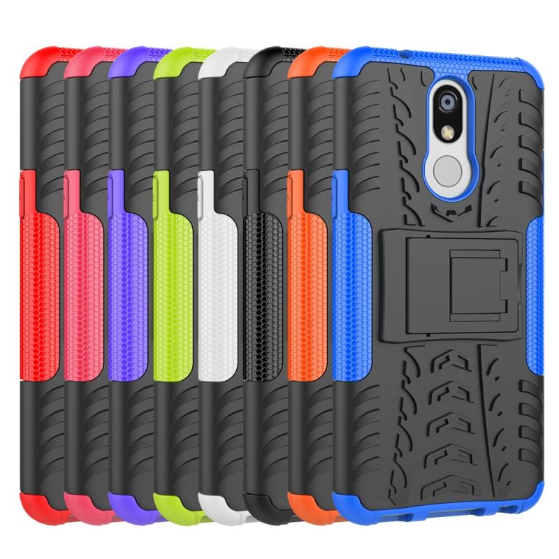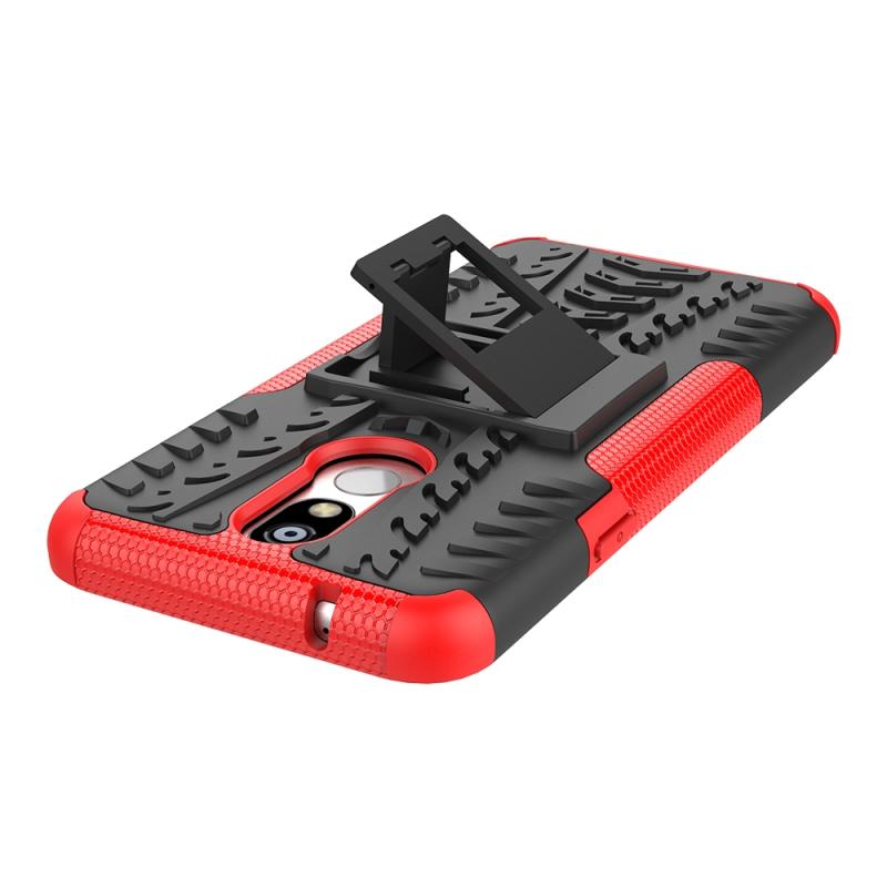 Shockproof PC + TPU Tire Pattern Case for LG K40, with Holder (Red)