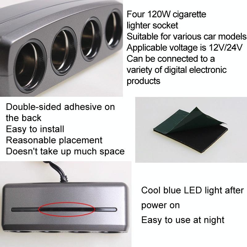 1. Four cigarette lighter ports, support 120W and the following electrical appliances power supply, wide applicability