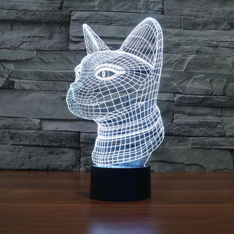 Side Face Cat Style 3D Touch Switch Control LED Light , 7 Color Discoloration Creative Visual Stereo Lamp Desk Lamp Night Light