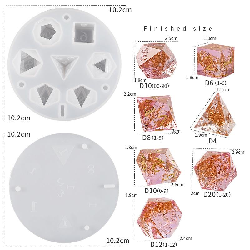 2. The mold can make 7 standard polyhedral dice, each side is engraved with clear numbers and carefully etched