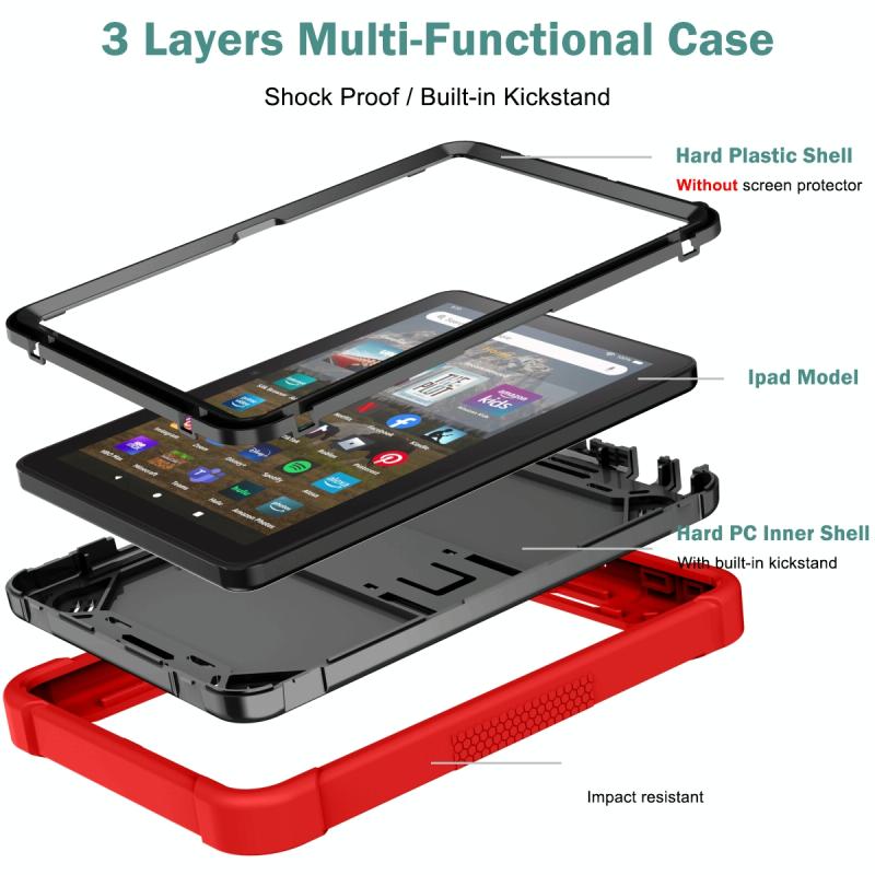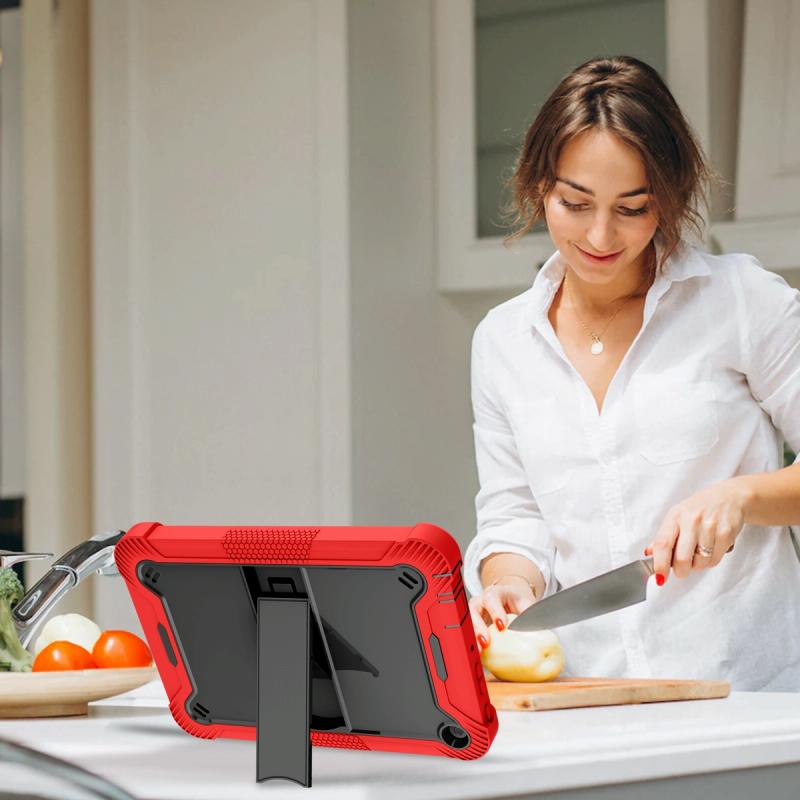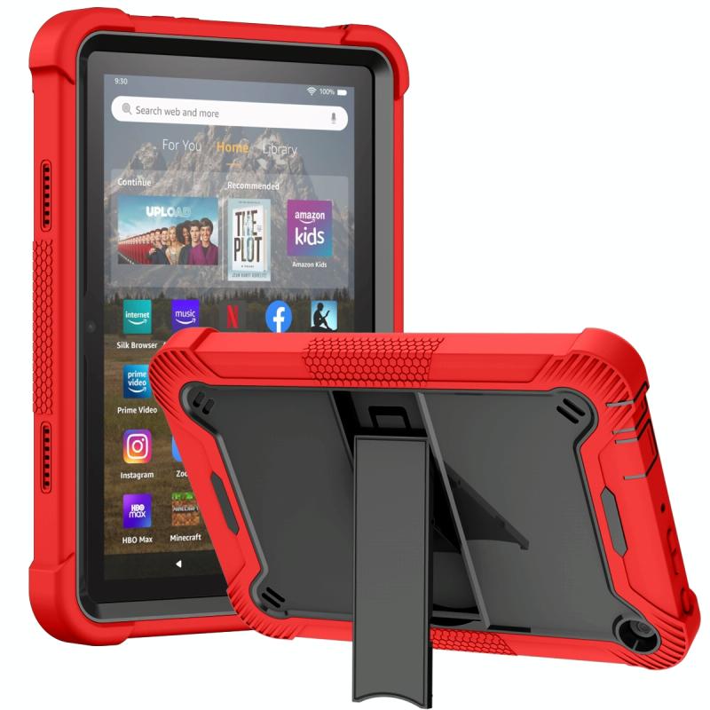 Silicone + PC Holder Shockproof Tablet Case For Amazon Kindle Fire HD 8 2022 / 2020 / HD 8 Plus 2020(Red+Black)