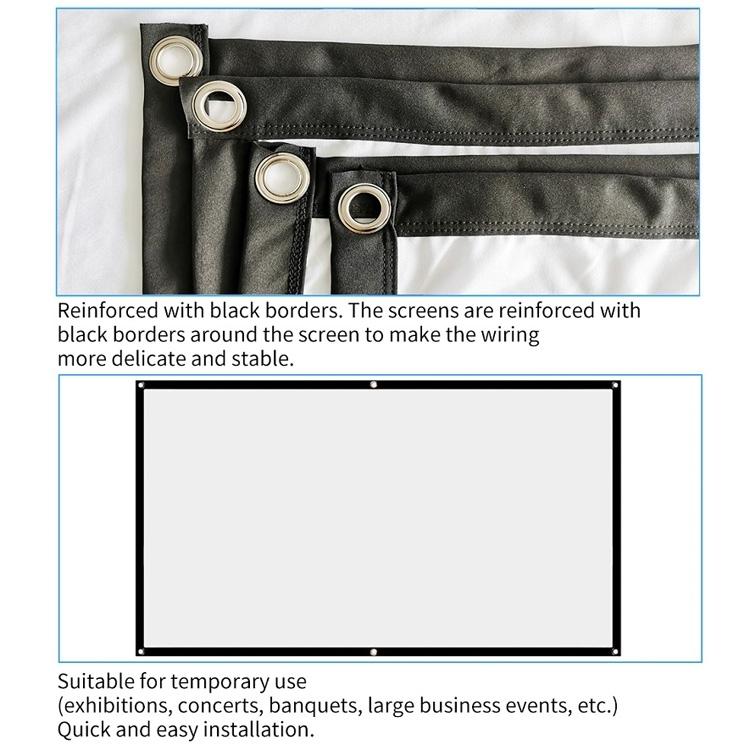 1. This movie screen adopts the principle of old-fashioned movie screens, which can be folded for easy carrying and can also be washed. It is suitable for use in fluid places or open spaces.