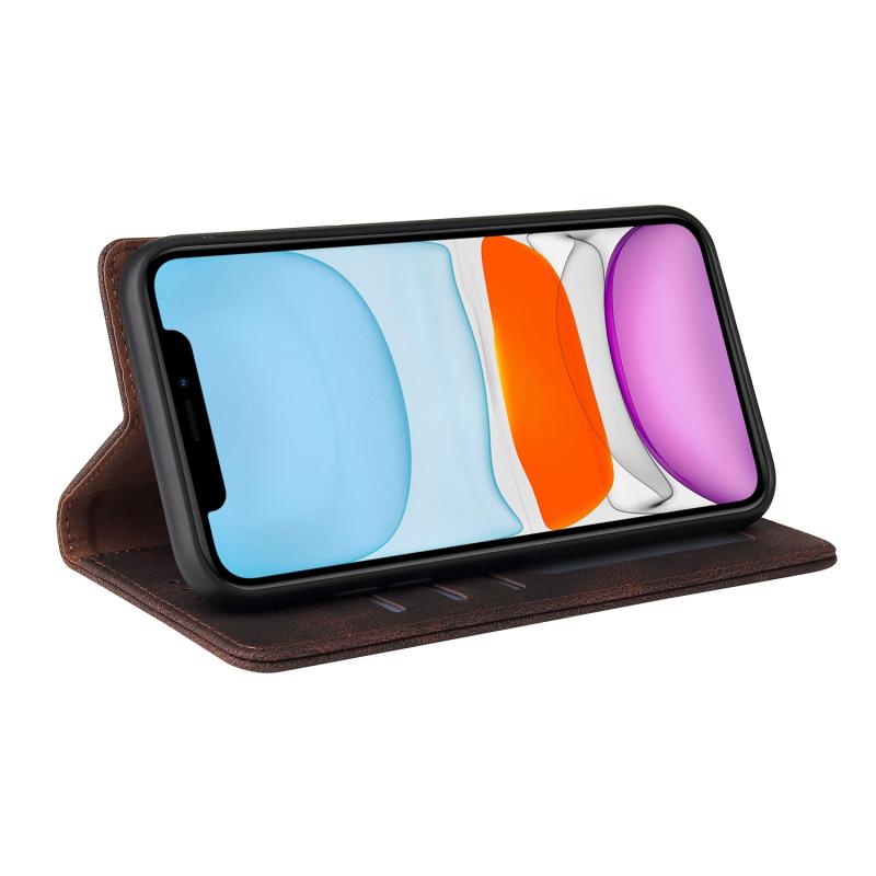 Simple Suction Closure Horizontal Flip Leather Case with Holder & Card Slot & Wallet For iPhone 11(Brown)