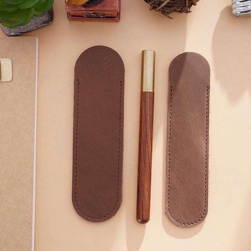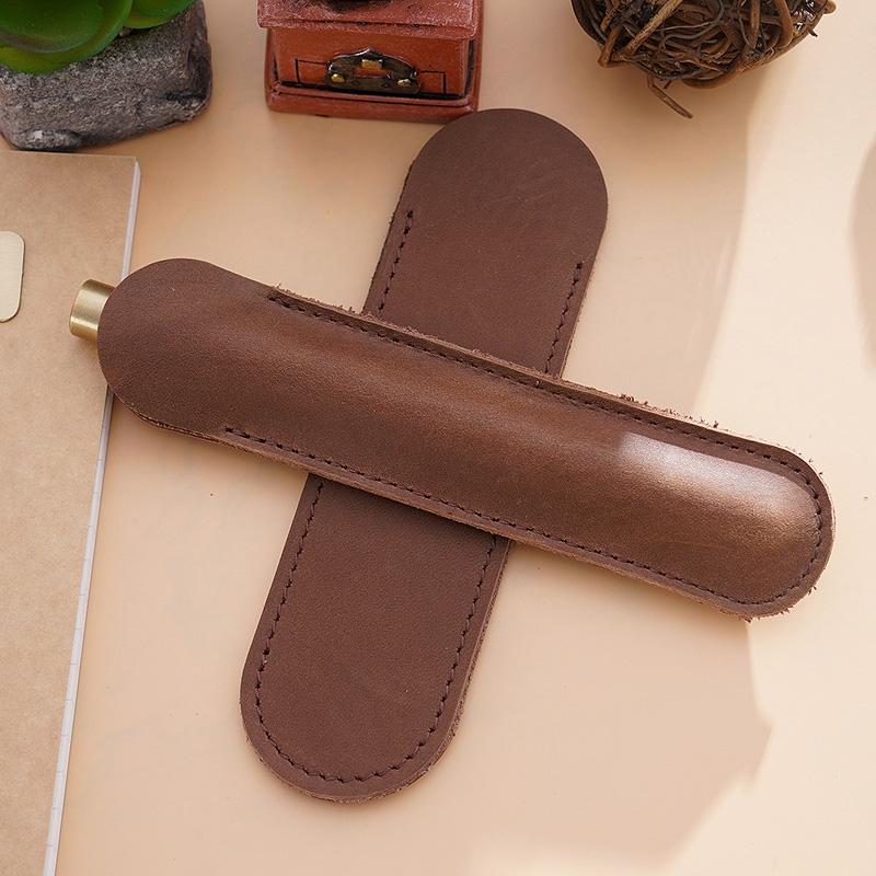 Single Pen Bag Handmade Line Pen Holder, Size: Large(Brown)