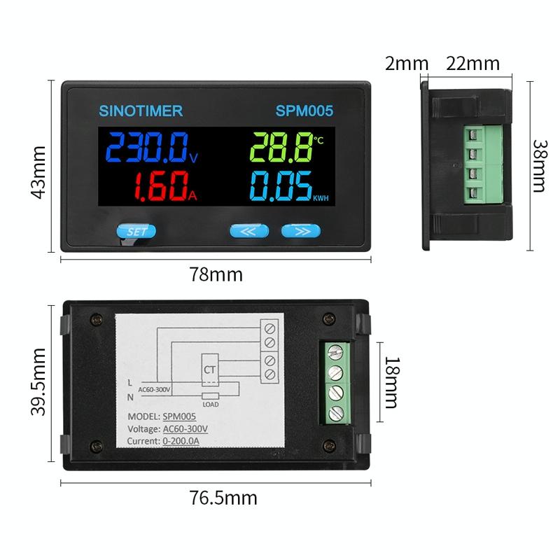 SINOTIMER SPM005 AC Digital Display Voltage Current Power Electricity Multifunctional Monitoring Meter, Specification: 200A (SINOTIMER)