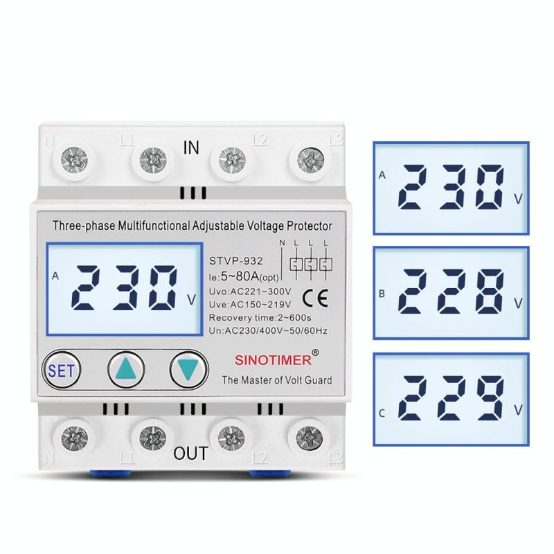 SINOTIMER STVP-932 50A 3-phase 380V LCD Self-resetting Adjustable Surge Voltage Protector (SINOTIMER)
