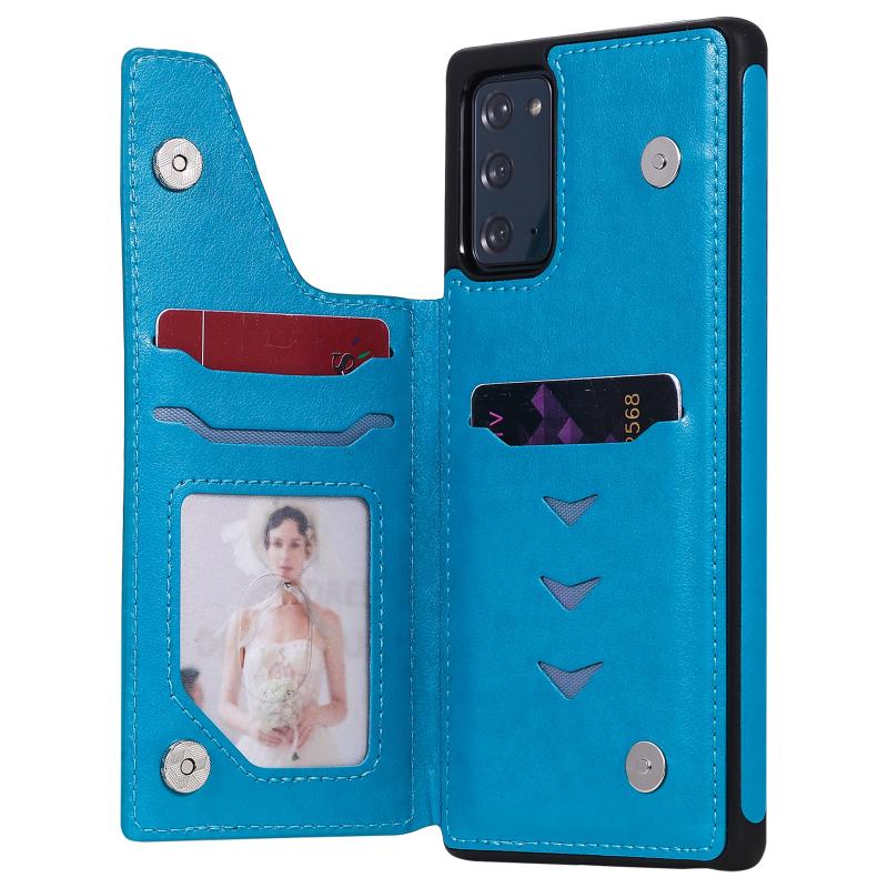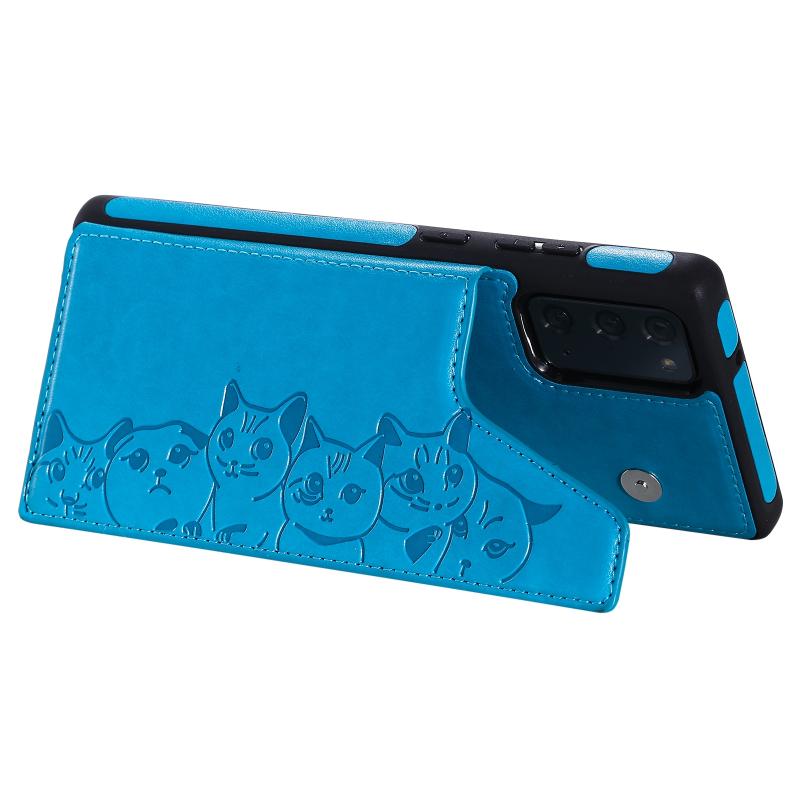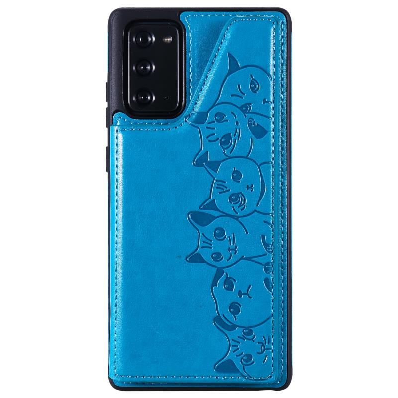 Six Cats Embossing Pattern Protective Case with Holder & Card Slots & Photo Frame For Samsung Galaxy Note20(Blue)