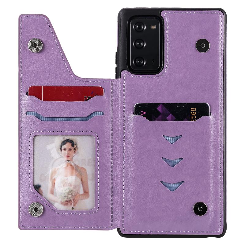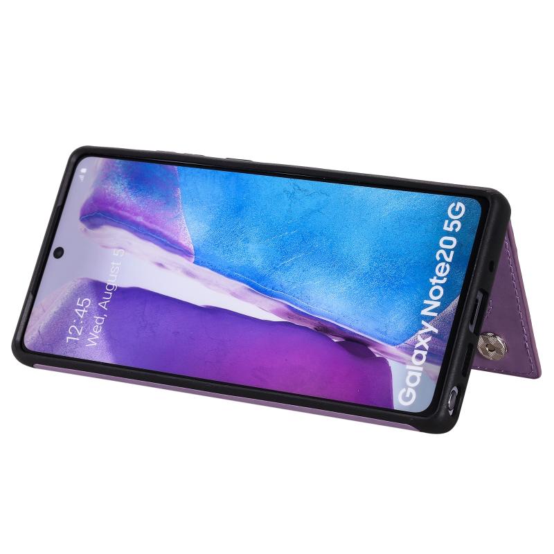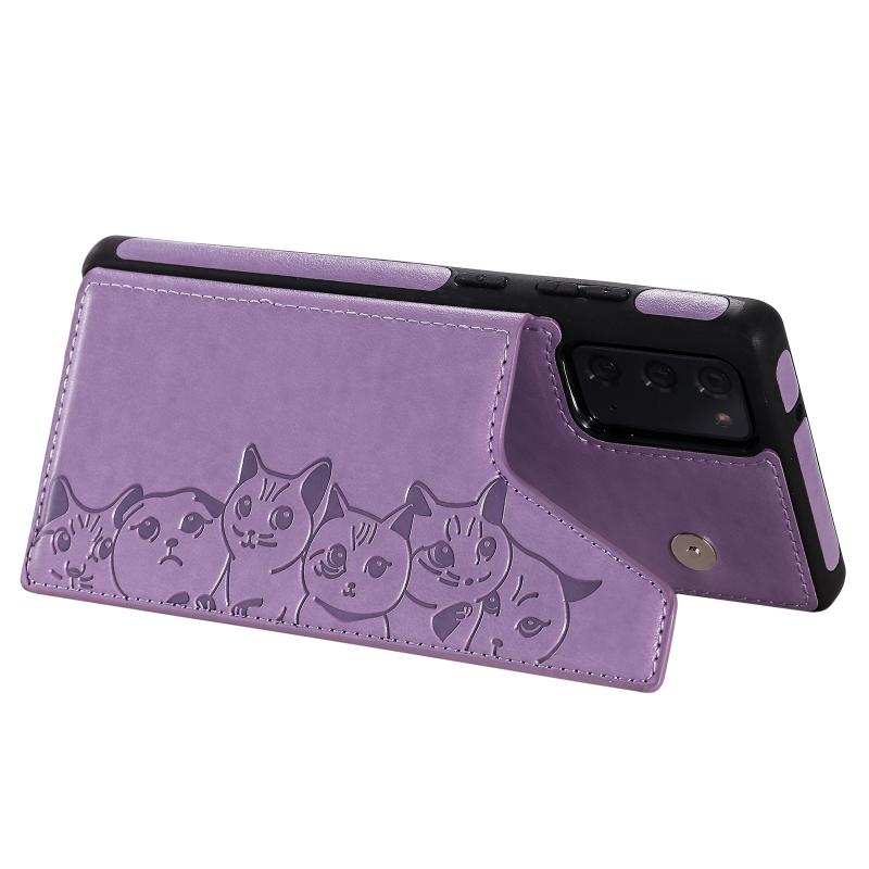 Six Cats Embossing Pattern Protective Case with Holder & Card Slots & Photo Frame For Samsung Galaxy Note20(Purple)