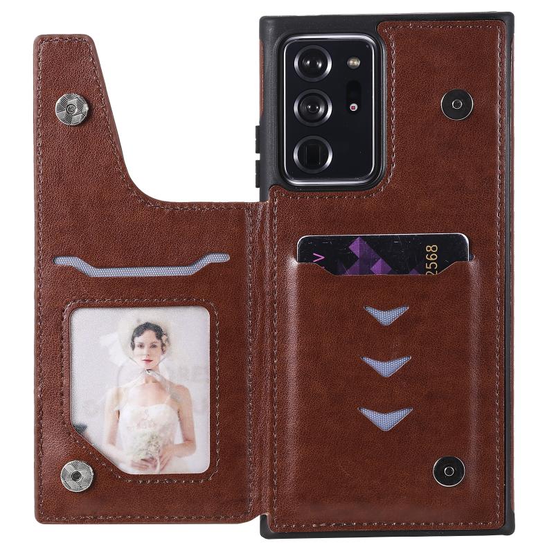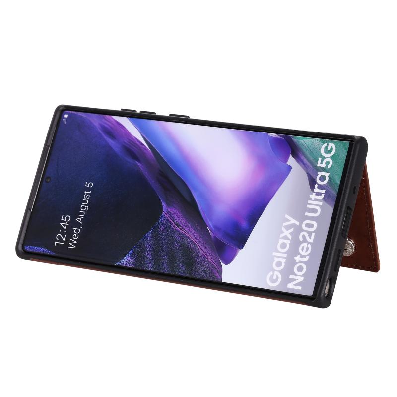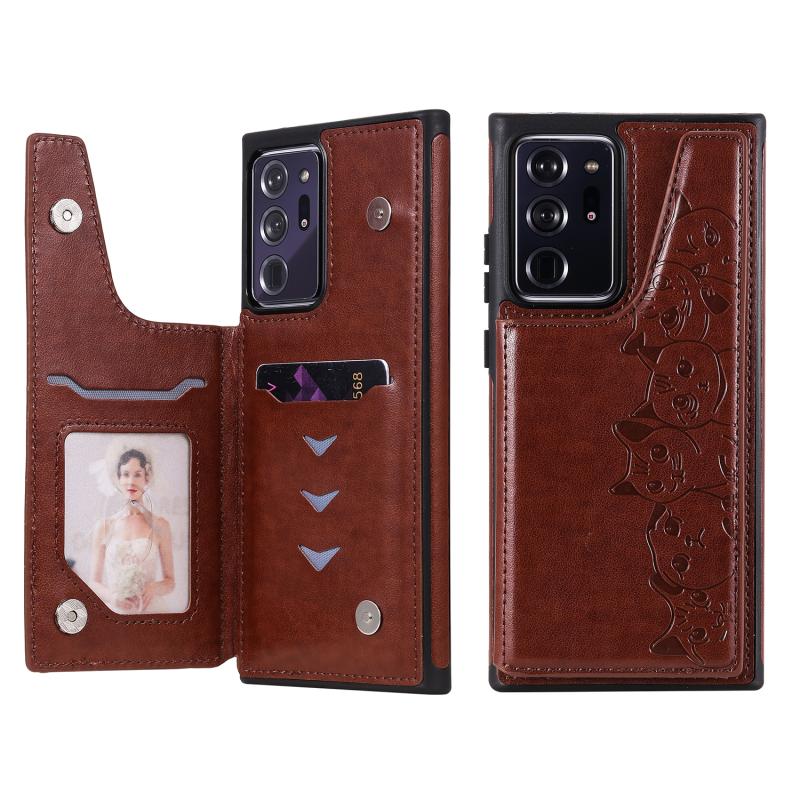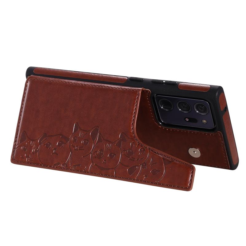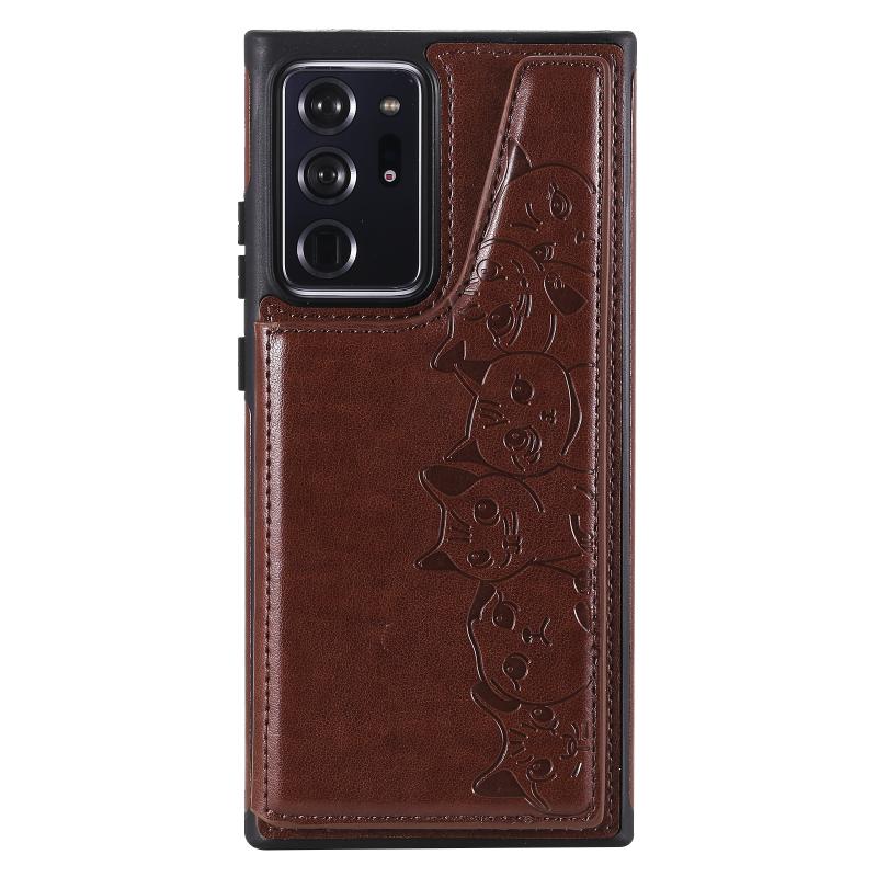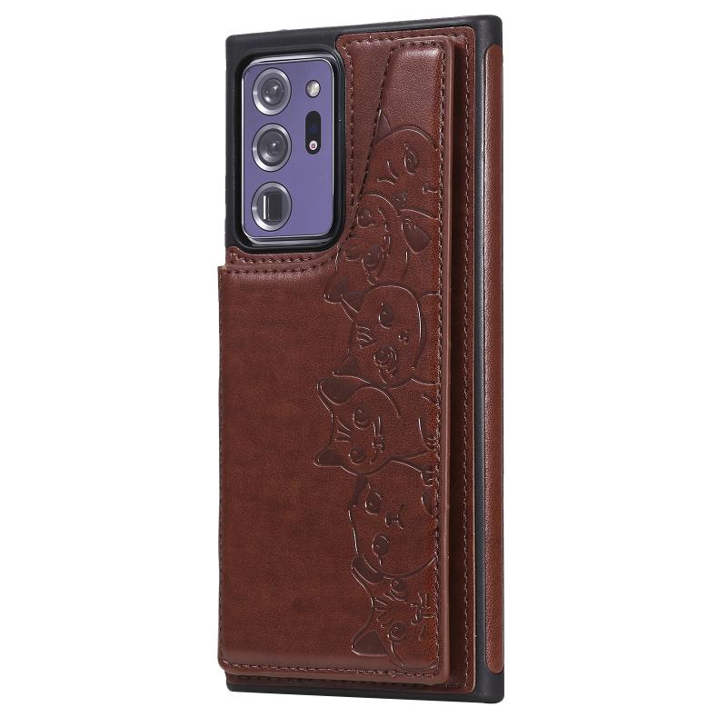 Six Cats Embossing Pattern Protective Case with Holder & Card Slots & Photo Frame For Samsung Galaxy Note20 Ultra(Brown)