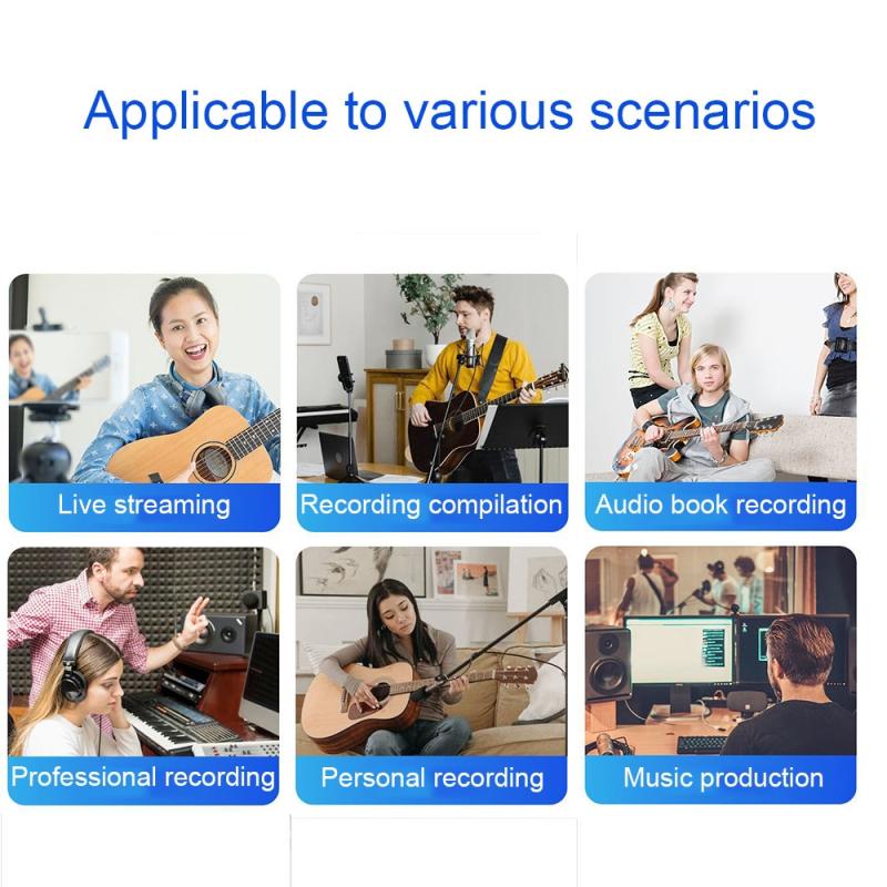 7. The sound card is equipped with 6.5mm and 3.5mm monitor output interfaces, and the independent knob controls the volume of the earphones