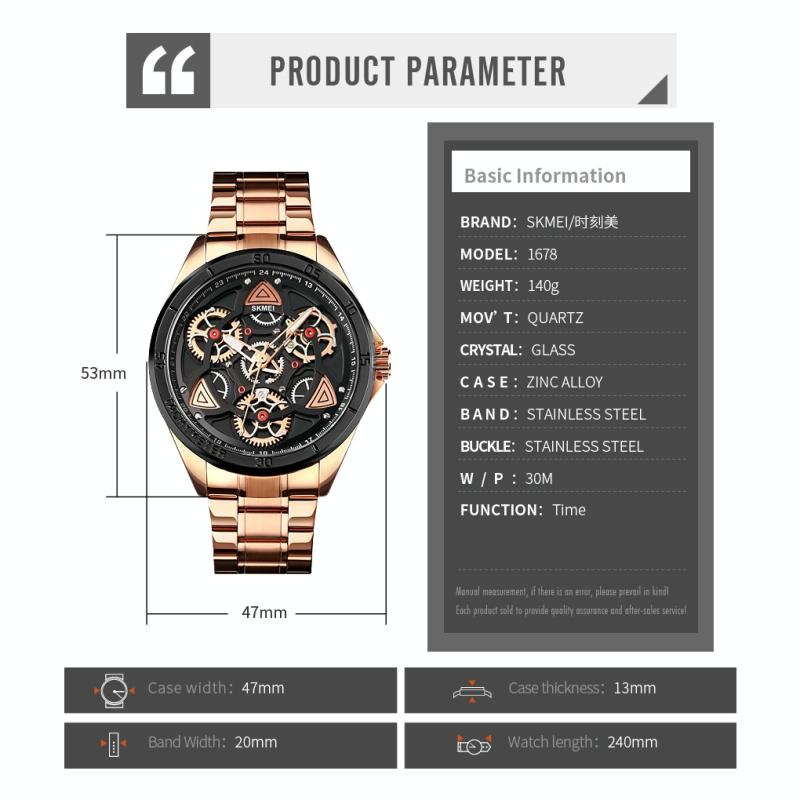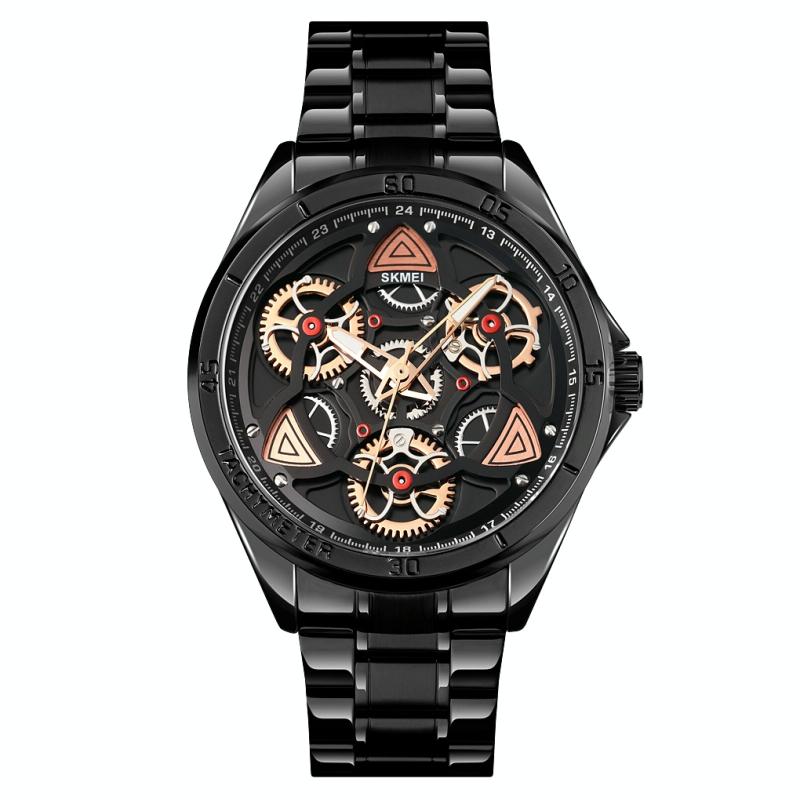 SKMEI 1678 Men Waterproof Quartz Watch with Rotatable Gear Dial(Black Shell Black Surface) (SKMEI)