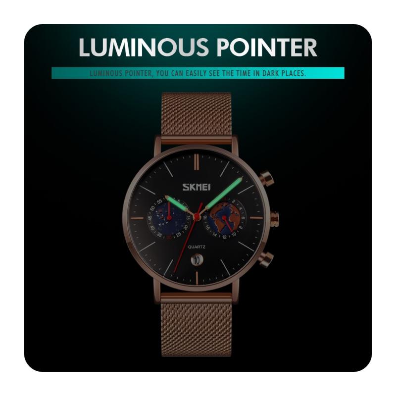 SKMEI 9231 Men Map Pattern Calendar Stopwatch Stainless Steel Strap Quartz Watch(Black) (SKMEI)