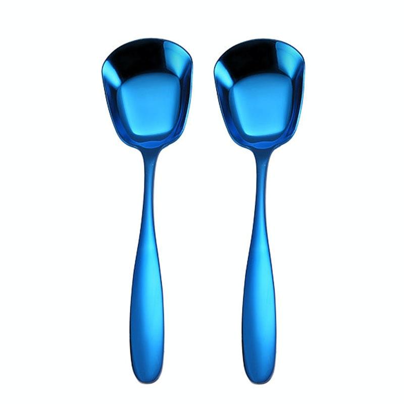 Small 304 Stainless Steel Spoon Glossy Thickened Flat Head Flat Bottom Serving Spoon, Color: Blue