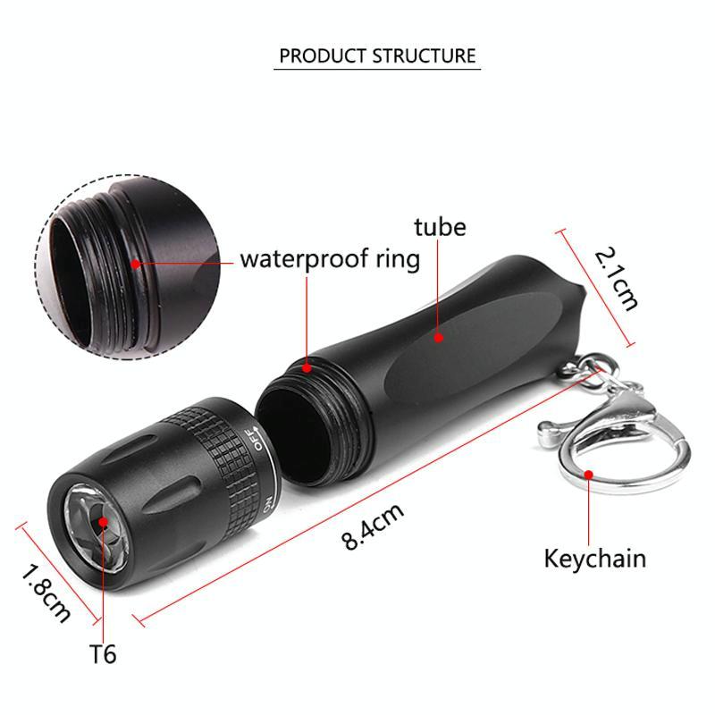 Small LED Portable Flashlight With Keychain(Black)