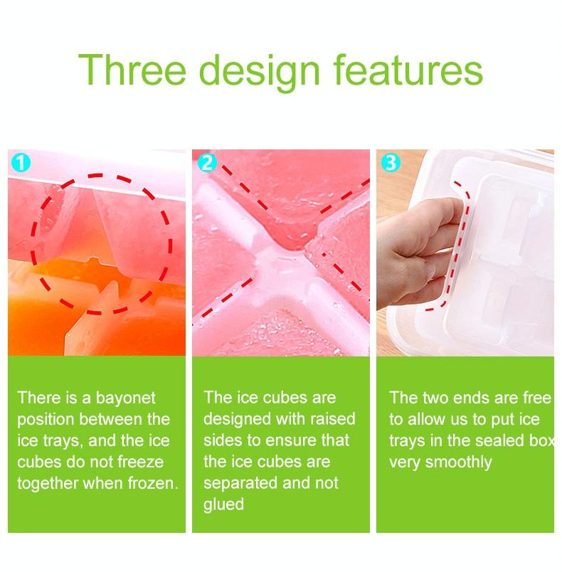 2. The ice cube tray with preservation box to hold ice cubes, no need other tools, you can store ice cube in it while still make other ice cubes on the tray.