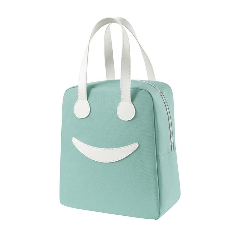 Smile Lunch Bag with Leather Handles, Size: L (Green)