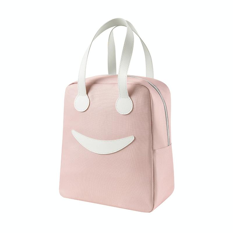 Smile Lunch Bag with Leather Handles, Size: L (Pink)
