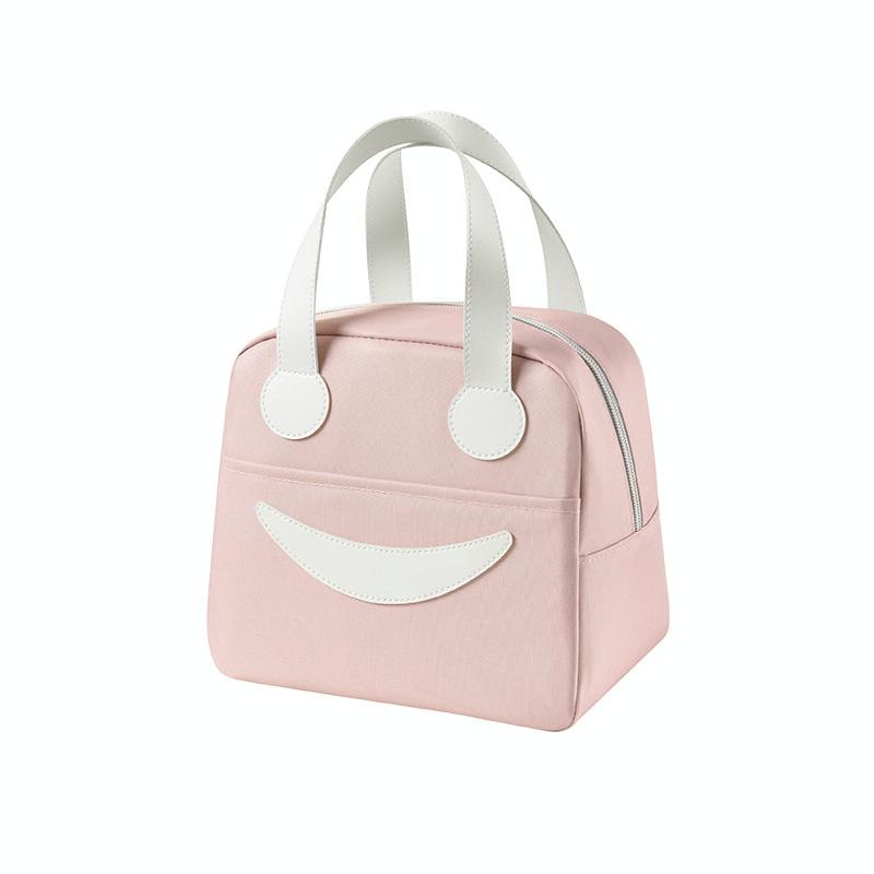 Smile Lunch Bag with Leather Handles, Size: S (Pink)