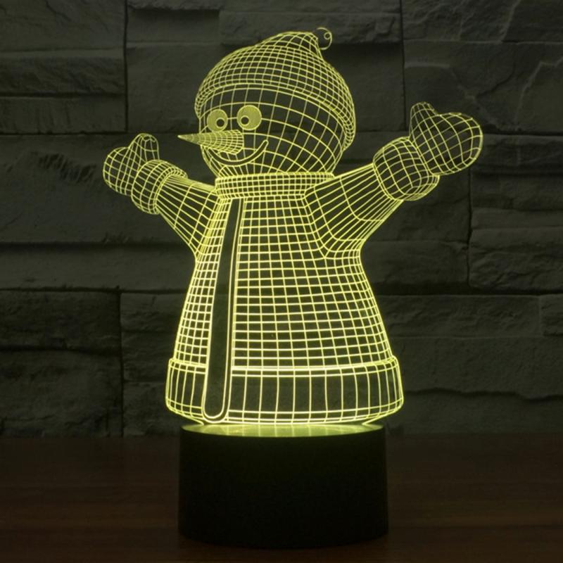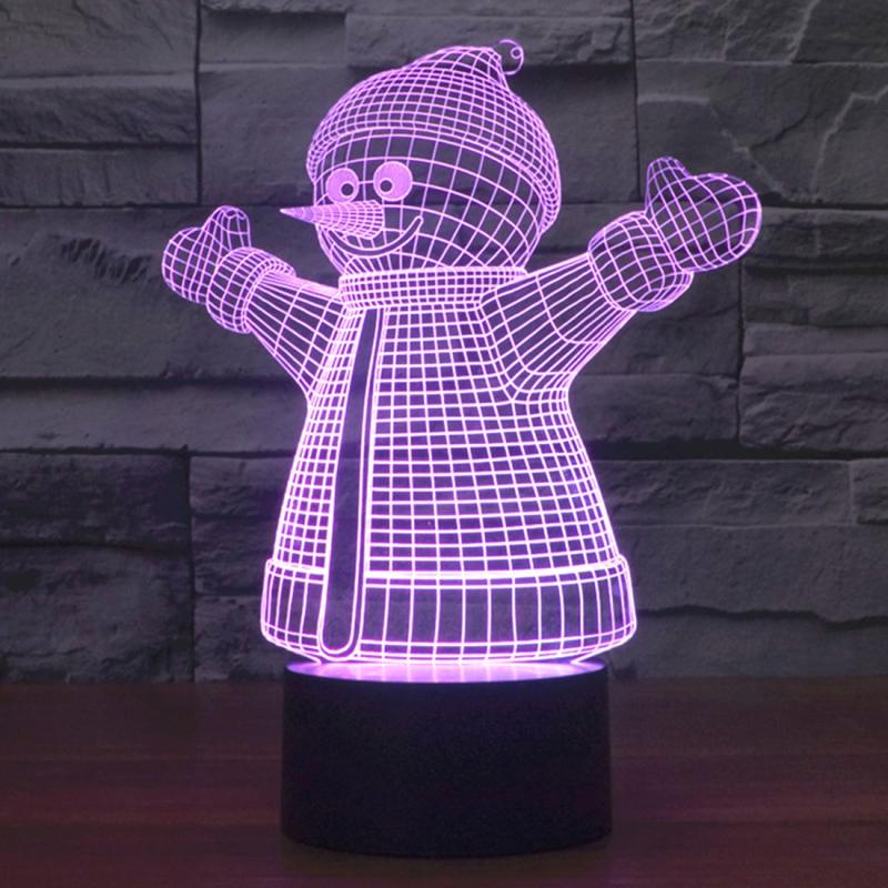 Snowman Style 3D Touch Switch Control LED Light , 7 Color Discoloration Creative Visual Stereo Lamp Desk Lamp Night Light