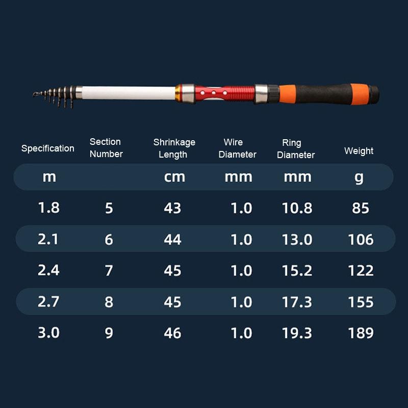 5. Weight: about 85g for 1.8m, about 106g for 2.1m, about 122g for 2.4m, about 155g for 2.7m, about 189g for 3.0m