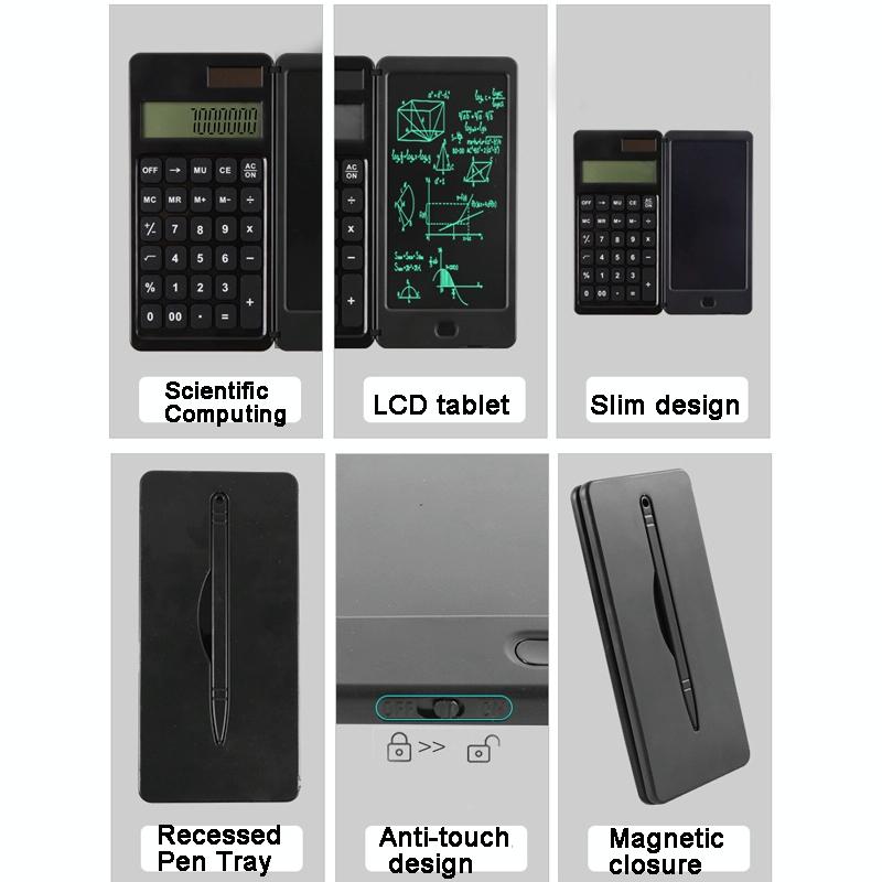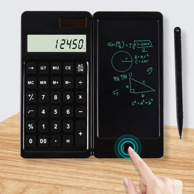 Solar Calculator Handwriting Board Learning Office Portable Folding LCD Writing Board(Black)