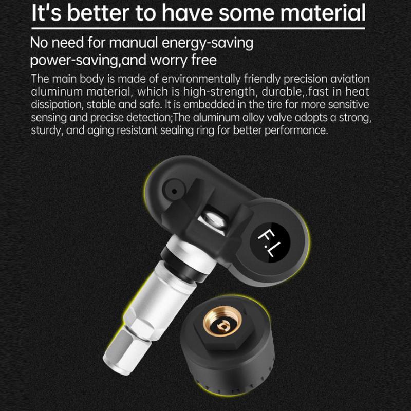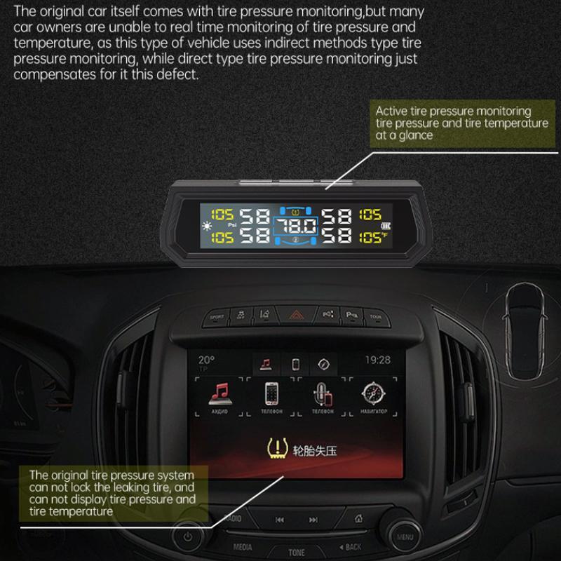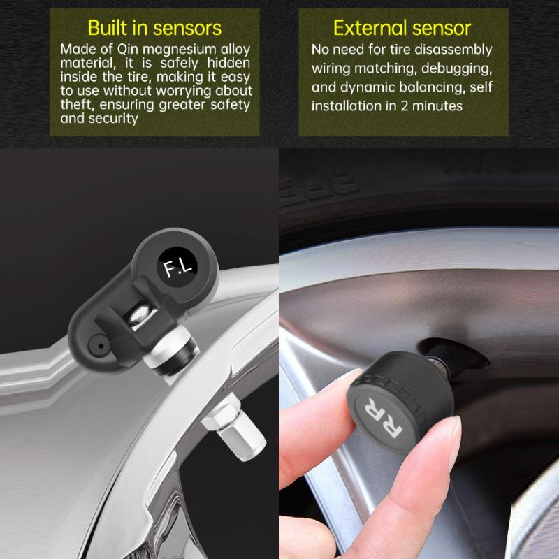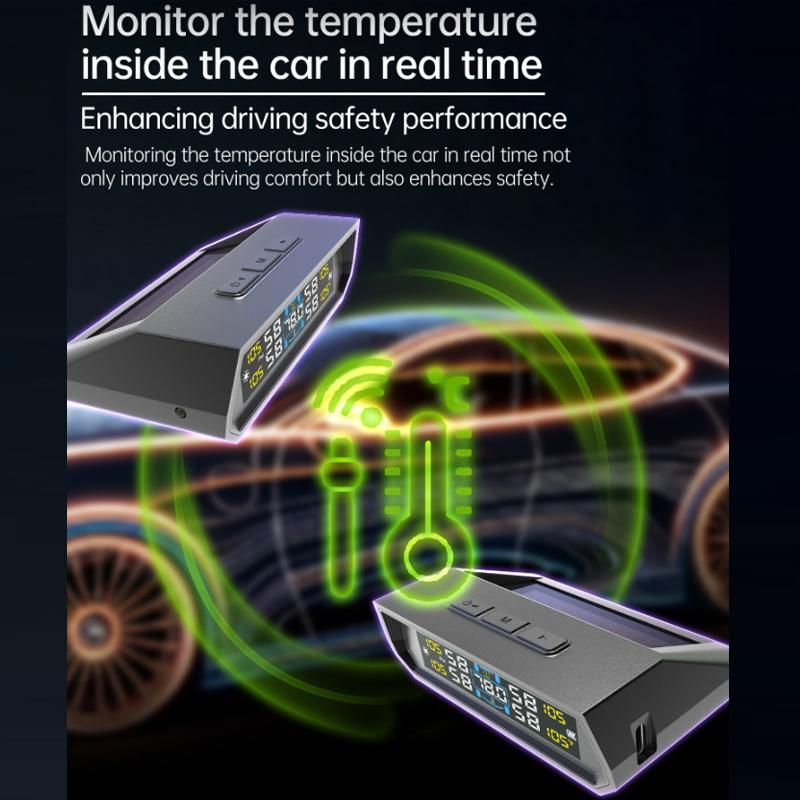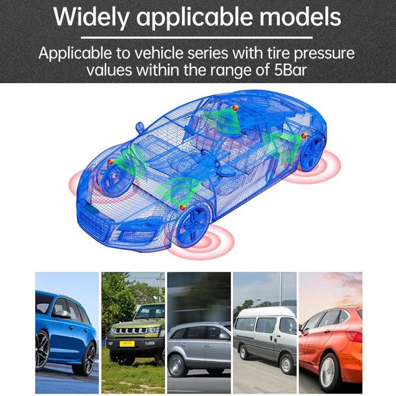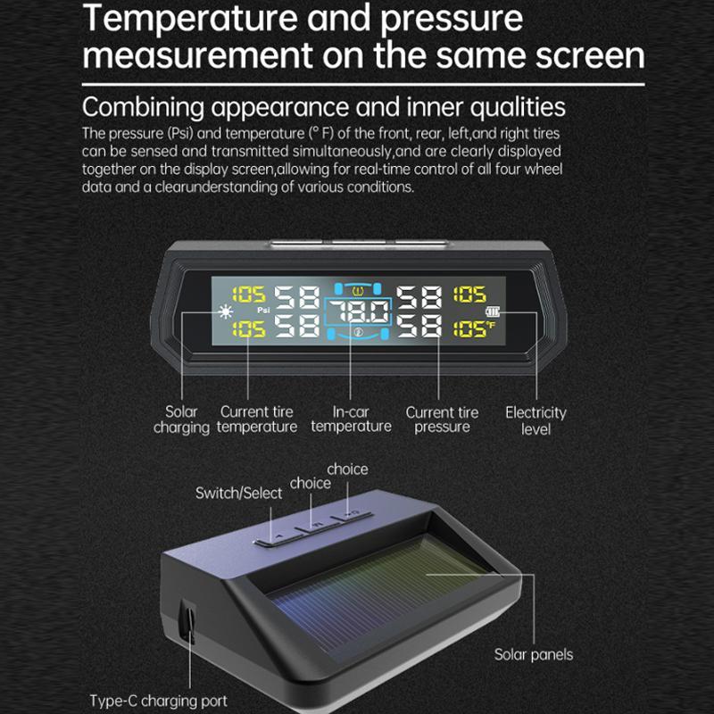 9. Simultaneously senses and transmits the pressure (bar) and temperature (degrees Celsius) of all four tires, clearly displaying them on the screen for real-time monitoring of all four tire data.