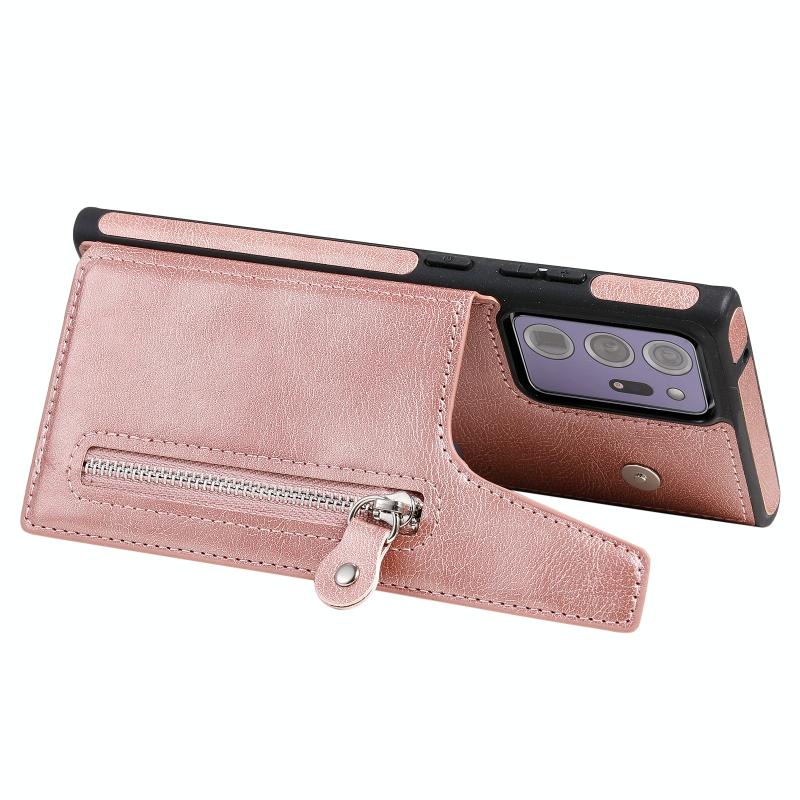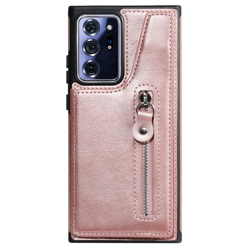 Solid Color Double Buckle Zipper Shockproof Protective Case For Samsung Galaxy Note20 Ultra(Rose Gold)