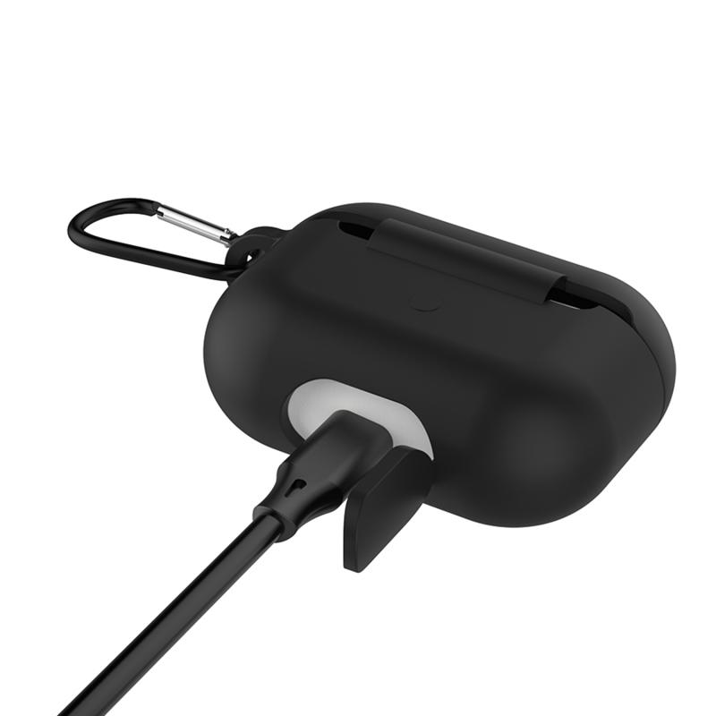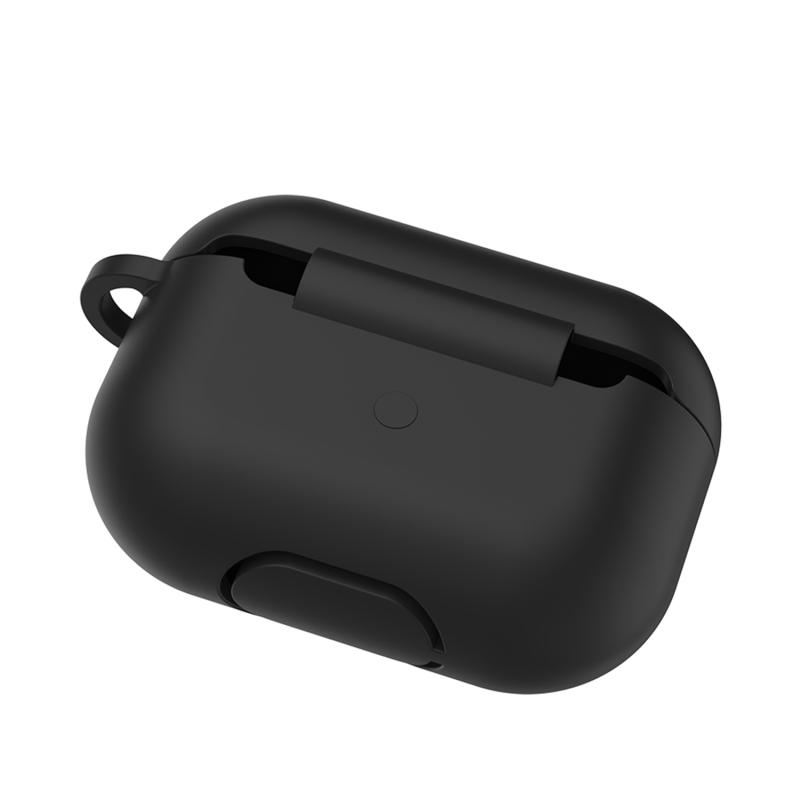 Solid Color Silicone Earphone Protective Case for AirPods Pro, with Hook(Black)