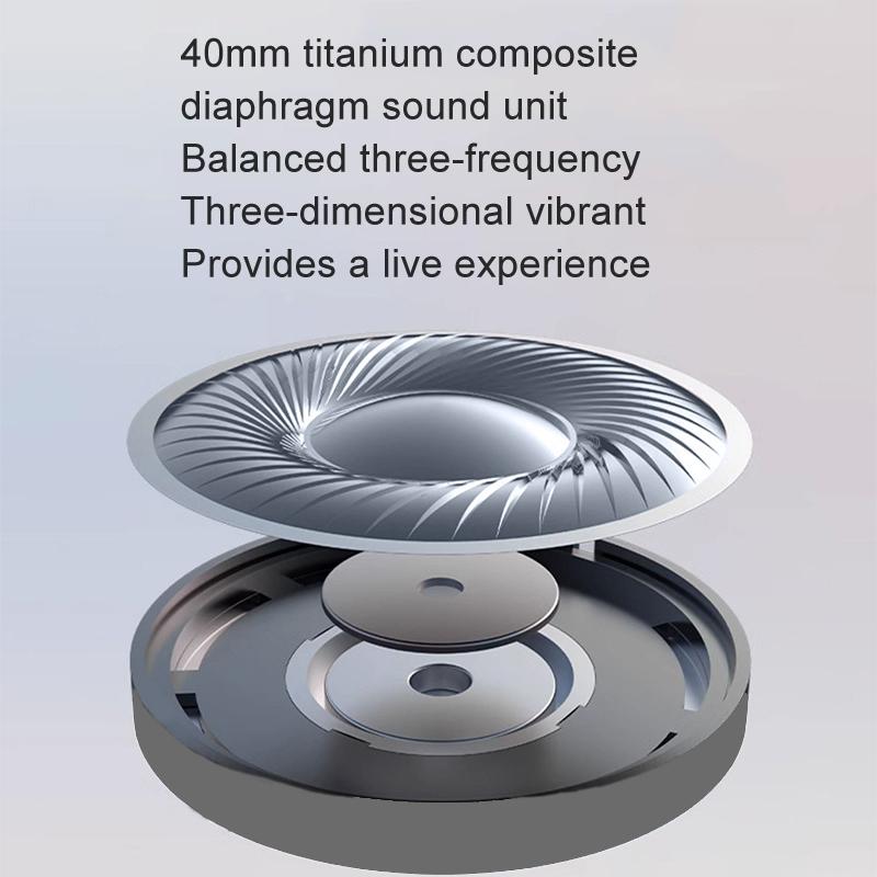 3. 40mm titanium-plated composite diaphragm sound unit, three-frequency balanced, three-dimensional vibrant, bring a sense of live experience
