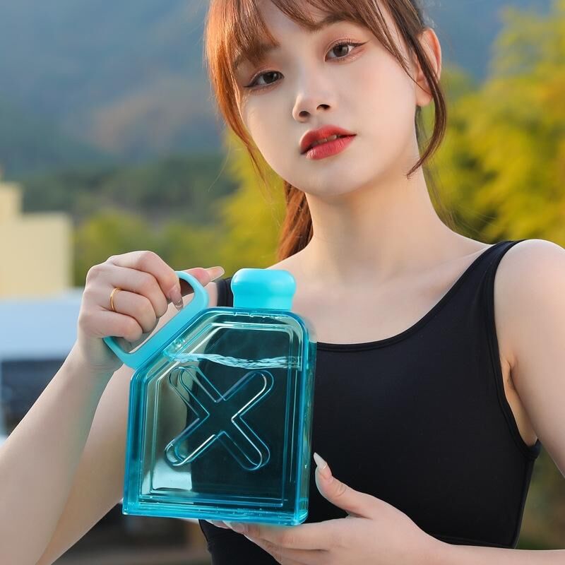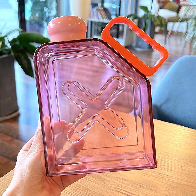 Square Fitness Sports Large Capacity Plastic Water Cup with Handle(Red)