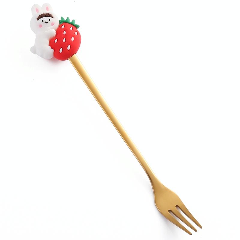 Stainless Steel Coffee Spoon Cartoon Fruit Fork Cute Kids Tableware, Style: Strawberry Rabbit Fork