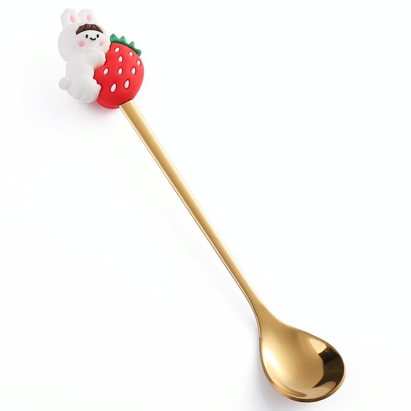Stainless Steel Coffee Spoon Cartoon Fruit Fork Cute Kids Tableware, Style: Strawberry Rabbit Spoon