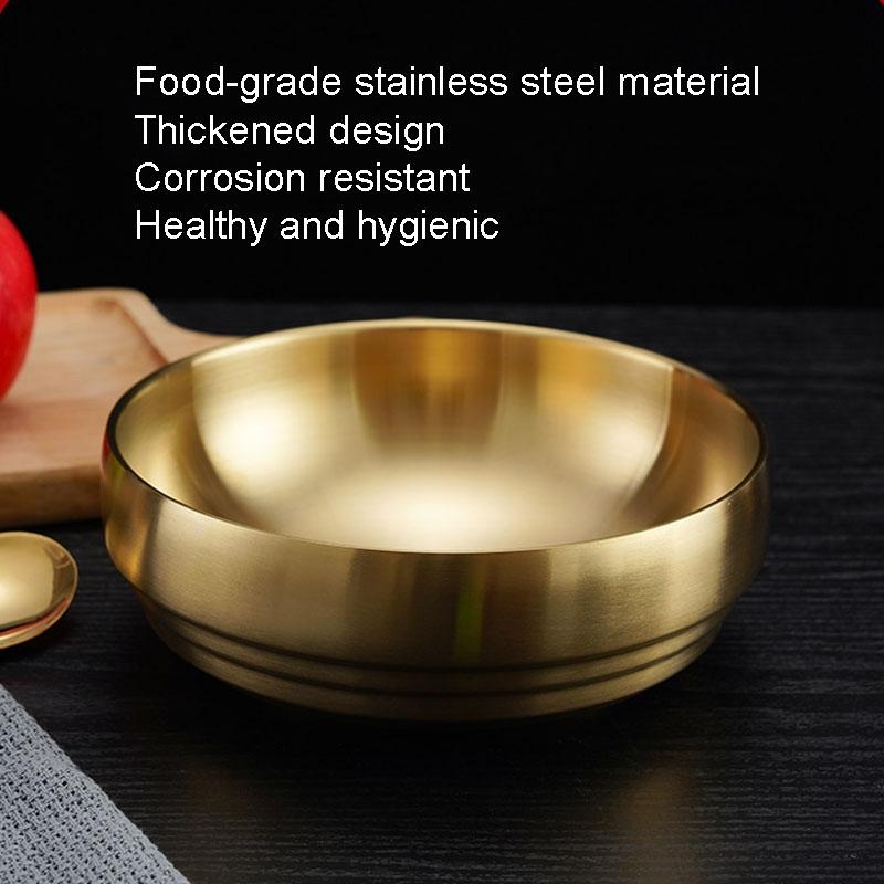 Stainless Steel Double Thickened Cold Noodle Bowl Rice Bowl 23cm (Gold)