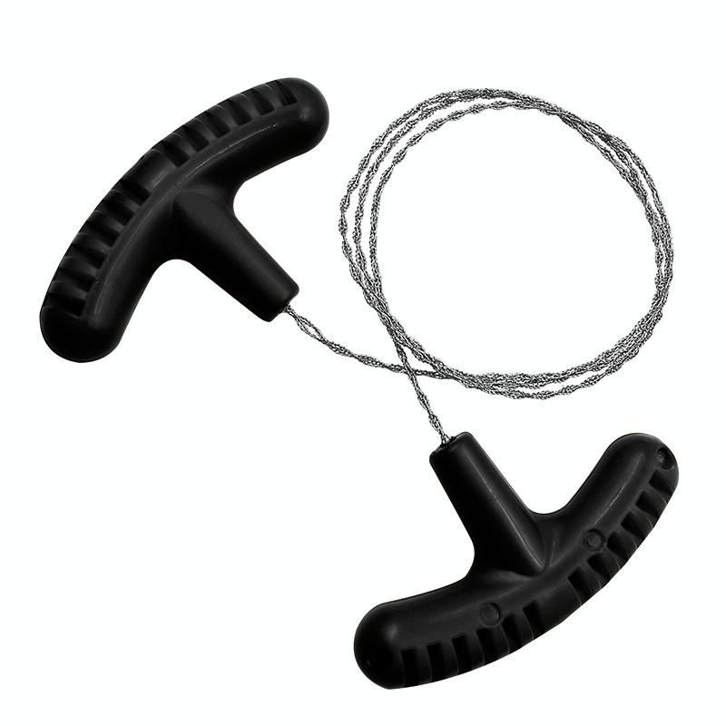 Stainless Steel Hand-pulled Wire Saw Rope Outdoor Camping Survival Equipment Saw, Color: Black 70cm