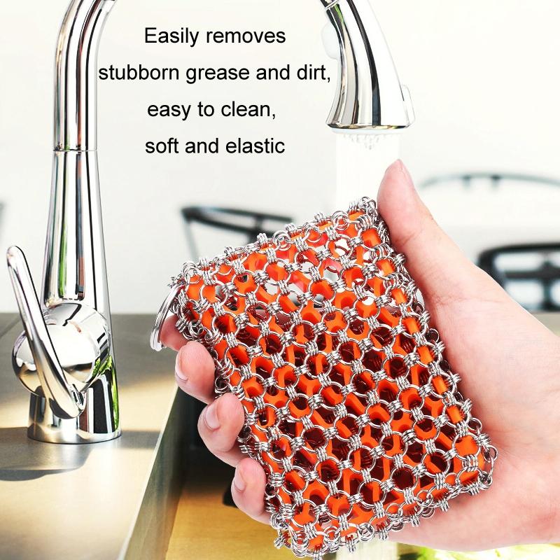 3. Made of tightly coiled stainless steel, it can scrub and rinse thoroughly, perfect for removing grease and grime from pots, baking sheets, etc.