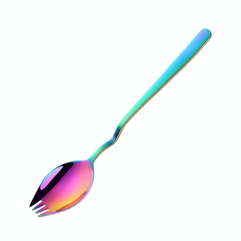 Stainless Steel Instant Noodle Fork Multi-Purpose V-Shaped Knife Fork Spoon Integrated Tableware, Color: Colorful