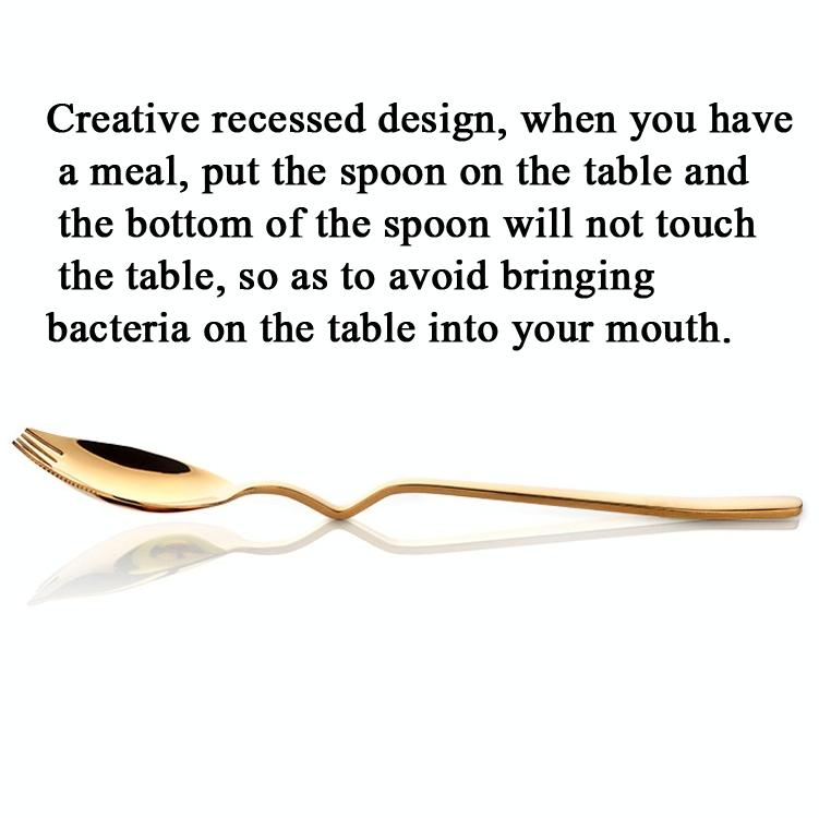 6. Recessed design, when you have a meal, put the spoon on the table and the bottom of the spoon will not touch the table, so as to avoid bringing bacteria on the table into your mouth.
