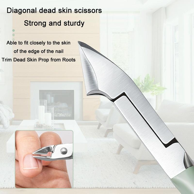 5. Oblique dead skin scissors, strong and durable, can closely fit the skin on the edge of the nail, trim dead skin props from the root