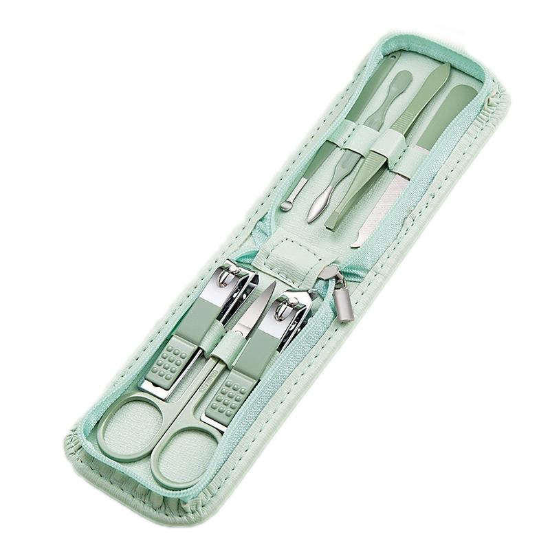 Stainless Steel Nail Clipper Nail Art Tool Set, Color: 7 PCS/Set (Green)