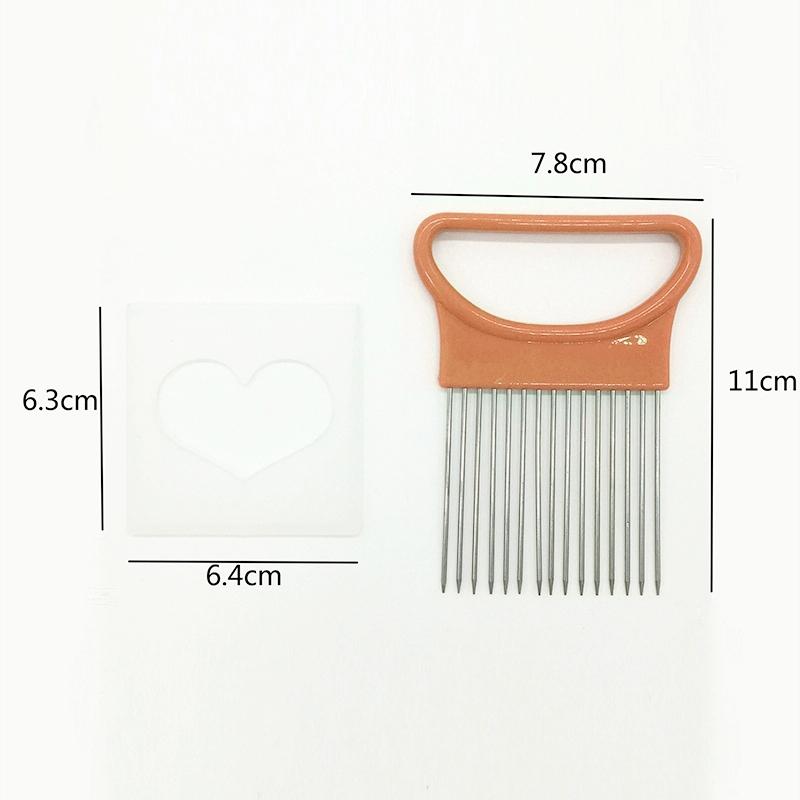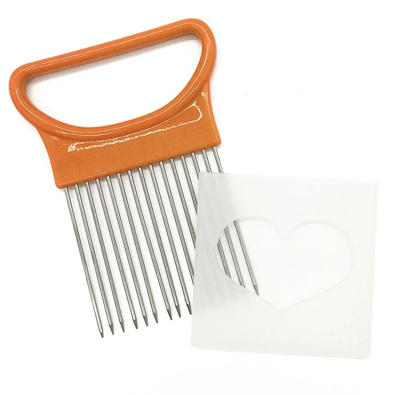 Stainless Steel Vegetable Onion Cutter Holder Meat Needle Kitchen Tools (Orange)