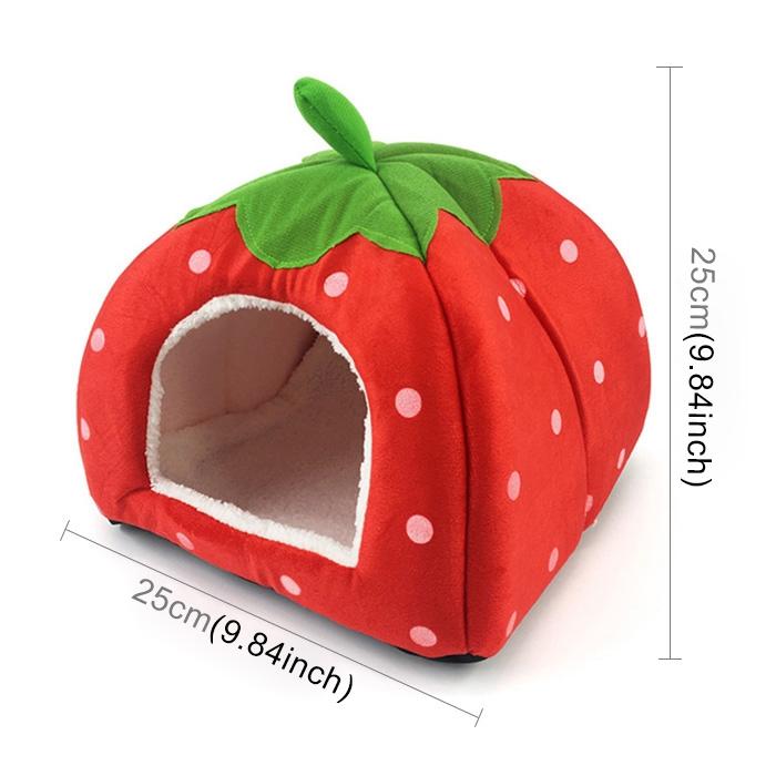 Strawberry Shaped Foldable Short Plush Pet House Nest, Size: XS