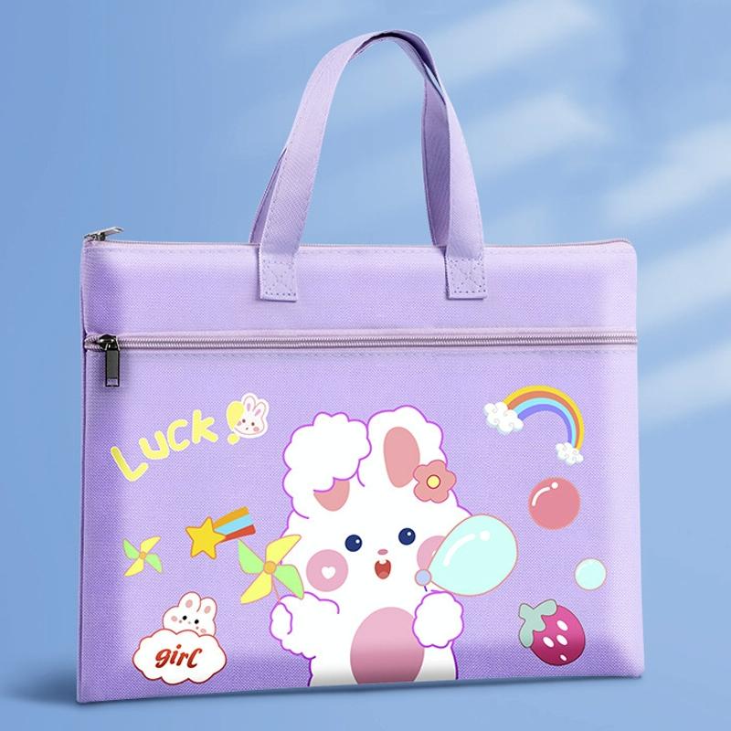Student Tote Handle Book Bag Canvas Waterproof Data Storage Bag(Lucky Rabbit)