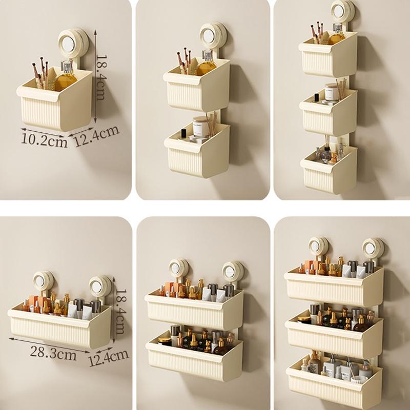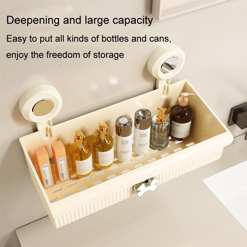 Suction Cup Wall Mounted Bathroom Shelf Drainage Detachable Storage Rack Hanging Basket, Style: Small White